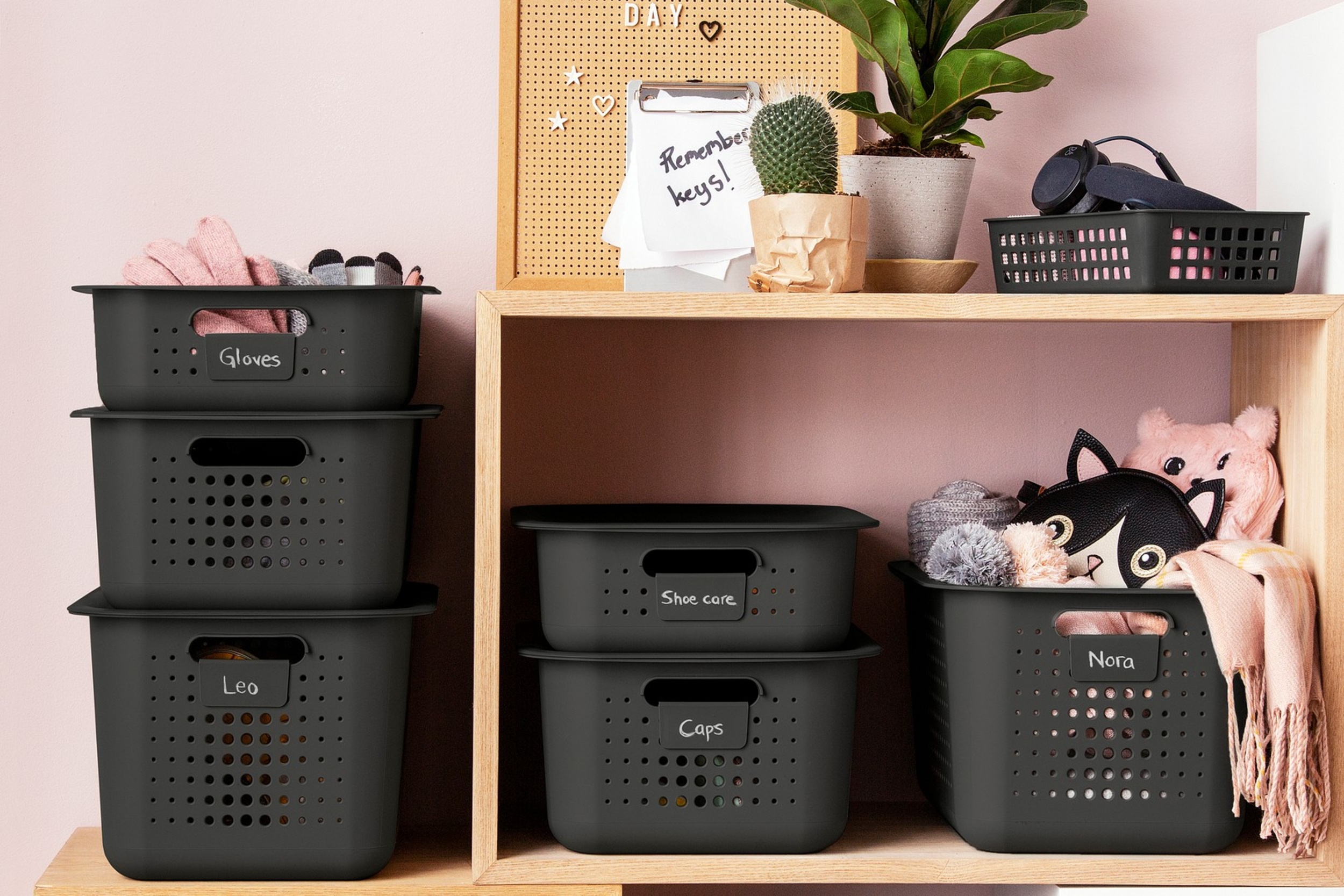 Enkla förvaringskorgar av återvunnen plast i olika storlekar som hjälper dig att organisera ditt hem