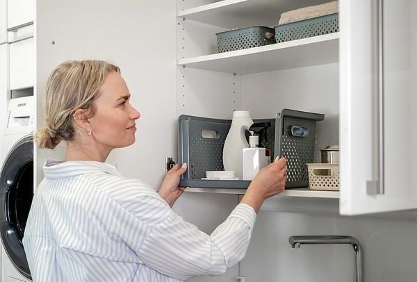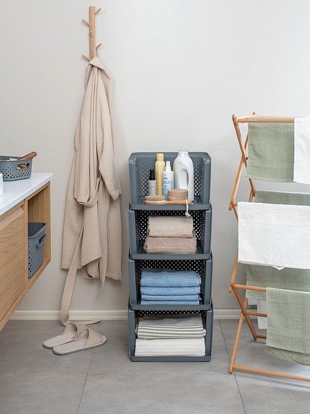 SmartStore™ Essence är en serie moderna förvaringskorgar. Den lätta och luftiga designen gör de här korgarna till ett måste för daglig förvaring. Essence Stack tar smart förvaring till nästa nivå och erbjuder en vertikal förvaringslösning med enkel åtkomst. Tack vare den öppna fronten kan du lätt lägga i och ta ut saker, även när korgarna är staplade. Bygg ditt eget förvaringstorn och håll de saker du använder mest nära till hands. Perfekt för badrum, garderob, hemmakontor eller barnrum. Botten rymmer dessutom A4-dokument. Bekväma handtag gör korgarna lätta att lyfta, och serien finns i moderna färger som passar alla hem. Tillverkad i Sverige av hållbar återvunnen plast. 10 års garanti.