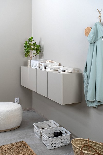 SmartStore™ Essence är en serie moderna förvaringskorgar. Den lätta och luftiga designen gör de här korgarna till ett måste för daglig förvaring. Korgen i storlek S är perfekt för att förvara och organisera kontorsmateriel, pysseltillbehör, leksaker eller andra småsaker som ofta används. Korgarnas handtag gör dem lätta att lyfta, och de finns i flera olika färger. Tillverkad i Sverige, av hållbar, återvunnen plast. 10 års garanti.